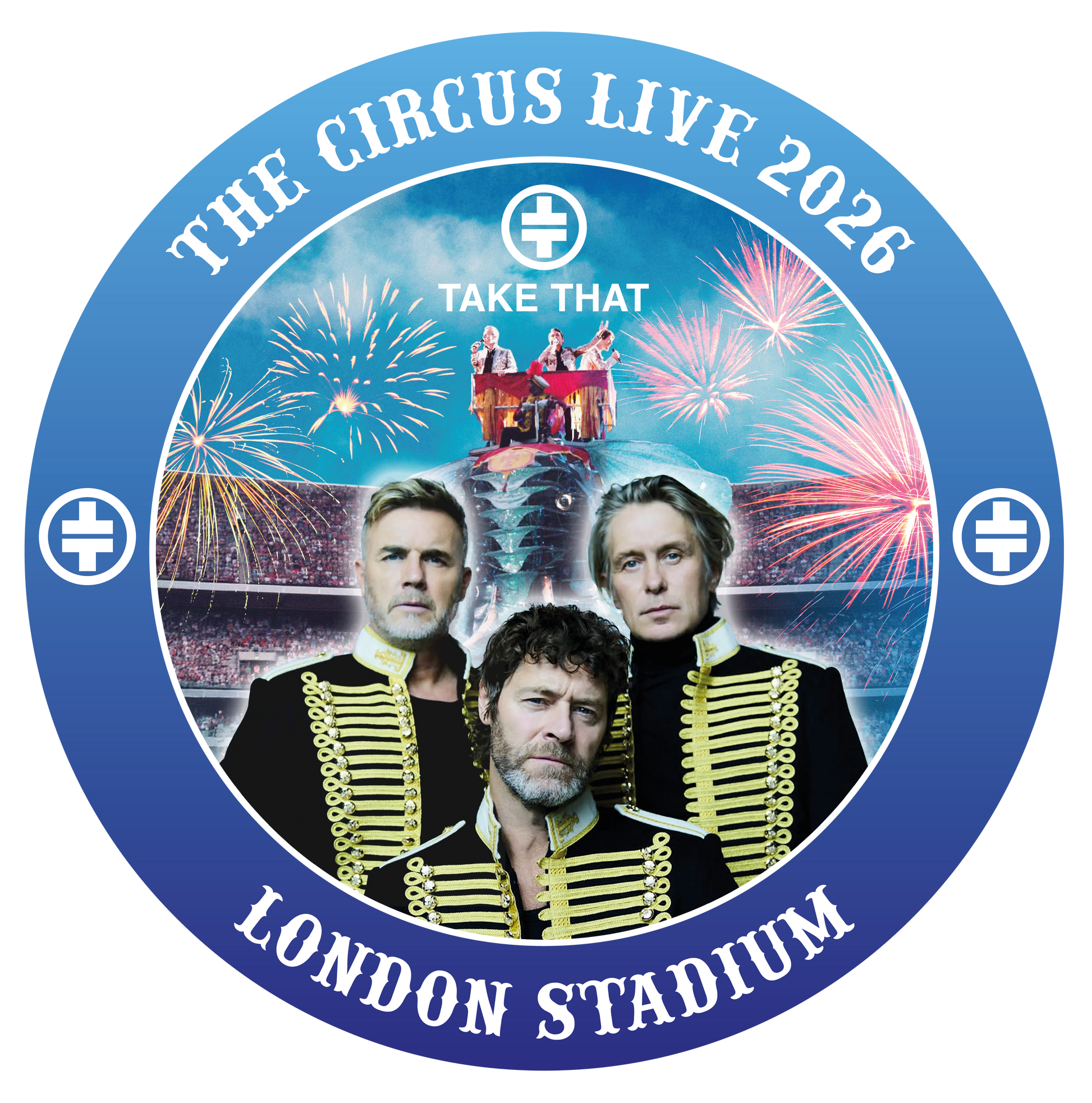 Celebrate the incredible comeback of Take That with this exclusive tour merchandise T-shirt marking their Circus Live 2026 concert at the London Stadium. Available in classic black, soft pink, and crisp white, this comfortable crew neck tee features a bold circular graphic showing the band in their signature military-style outfits set against a sky filled with bright fireworks. The eye-catching blue circular badge highlights the tour name, venue, and date, making it a special keepsake for fans.
