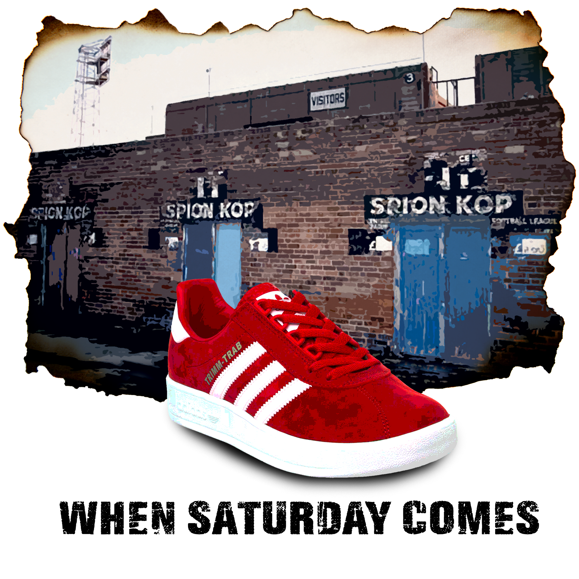 This tee features a vibrant DTF (Direct-to-Film) transfer print of a crumbling 1980s football stadium, the heart of countless terrace wars. In the foreground, the iconic red Adidas Trimm Trab – the training shoe that ruled the terraces and carried the weight of every chant, every match, every moment of that era. The slogan "When Saturday Comes" says it all – that feeling of anticipation, that raw passion, and that relentless energy of matchday in 1980s Britain.